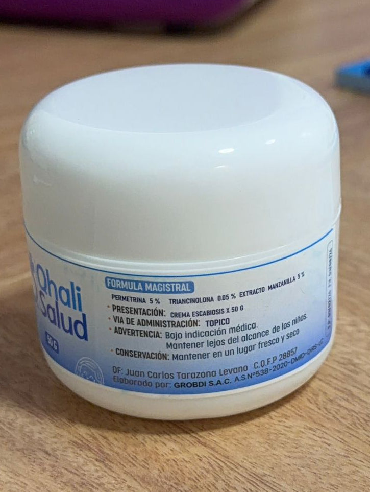 Nuestra crema magistral está formulada especialmente para el tratamiento de la escabiosis, ayudando a eliminar los ácaros responsables de la infección y aliviando los síntomas asociados como la picazón intensa e irritación de la piel.