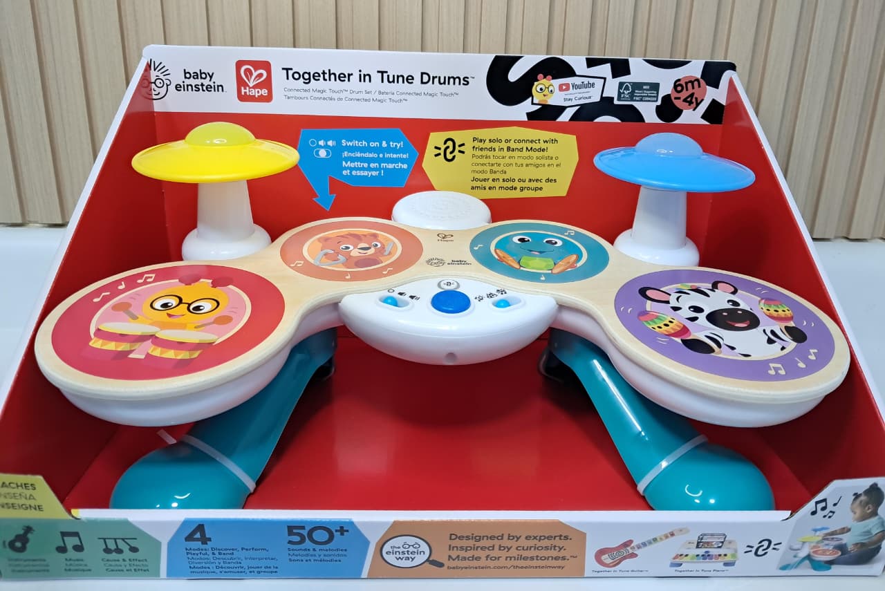 Este encantador set de batería Montessori está diseñado especialmente para manos pequeñitas. Con colores llamativos, superficies táctiles y sonidos suaves, ayuda a desarrollar la coordinación, el ritmo y la motricidad fina mientras el bebé explora libremente.